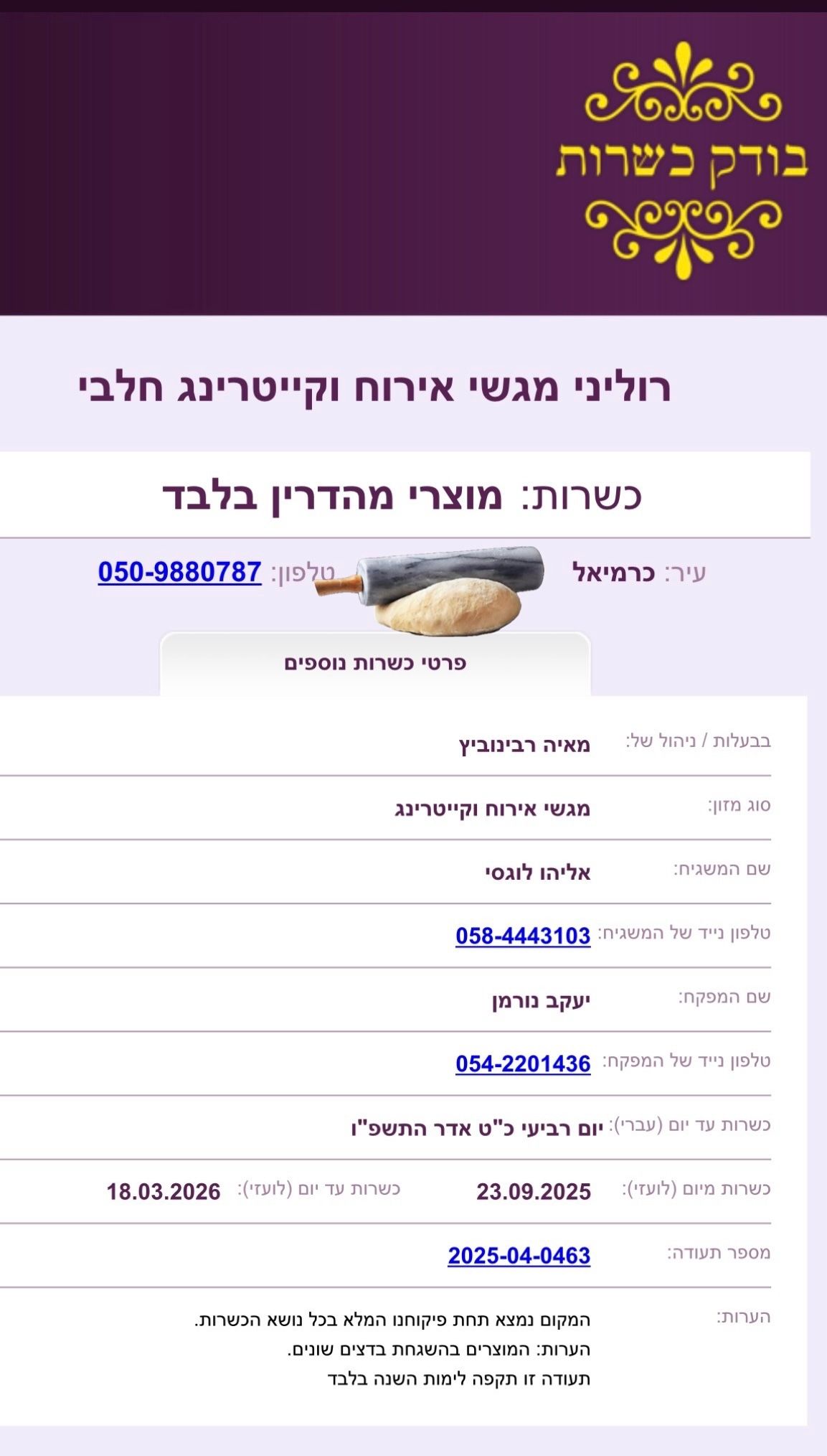 קייטרינג חלבי כשר Maya hazut 050-9880787 Rollini