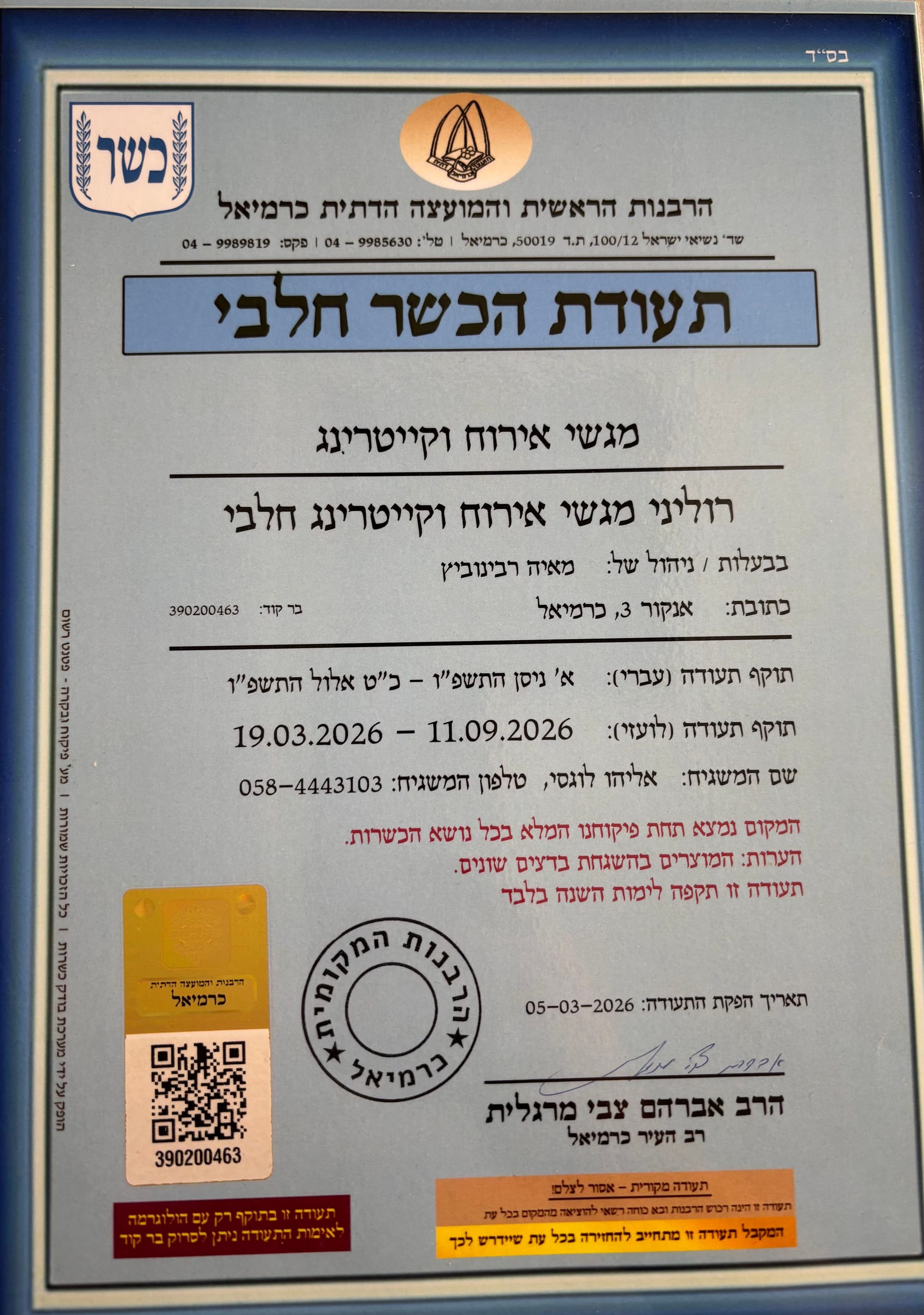 קייטרינג חלבי כשר Maya hazut 050-9880787 Rollini
